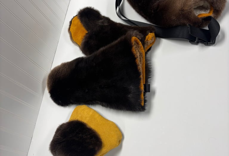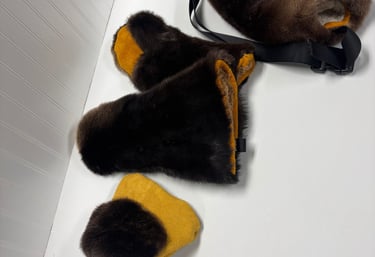 At r&j makes, we bring cozy comfort to life with our furrier-crafted mittens, hats, koozies, bags, and slippers.